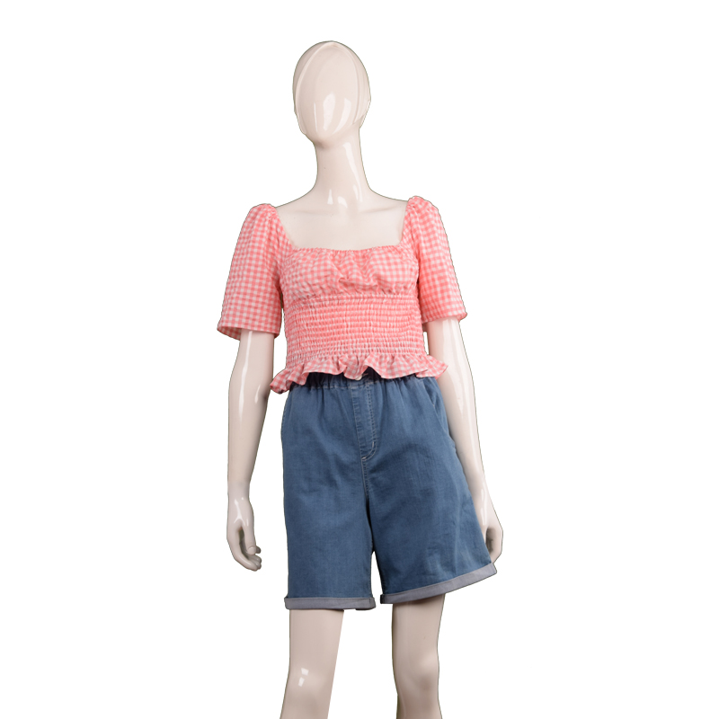 女士格纹一字领上衣