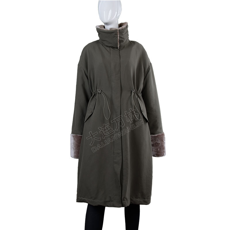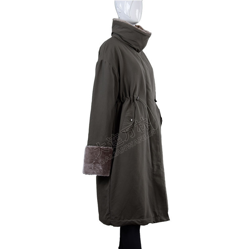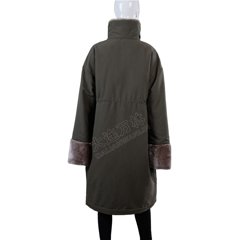 女士立领毛毛袖口长款羽绒服