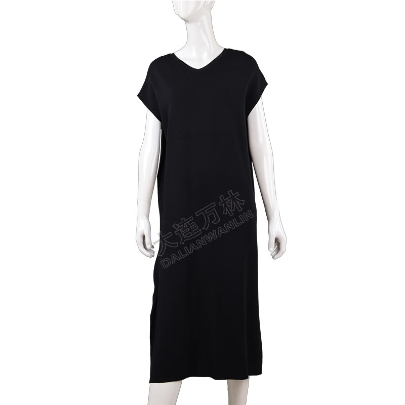 黑色半袖长款针织裙